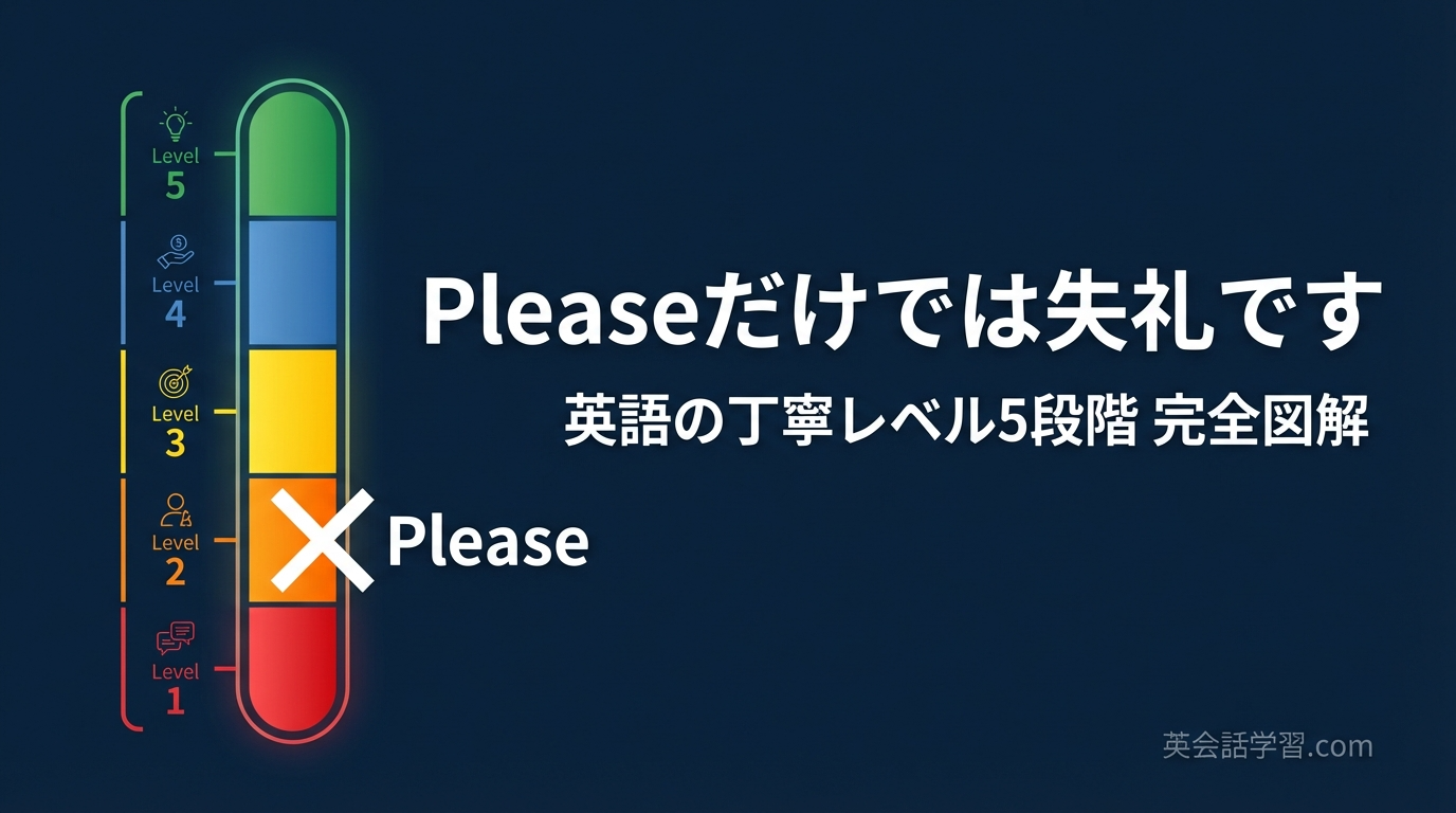 この記事では、英語の敬語レベルを5段階に分類し、図解つきで完全解説します。読み終わるころには、ビジネスメールや英会話で「どのレベルの丁寧さを使えばいいか」が直感的に分かるようになります。