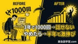 | 英語を話す時間 | 人による(0〜1,000時間) | 約150〜300時間/年(毎日25〜50分) |