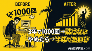 逆張り英語学習法 オンライン英会話を3年続けても話せなかった男がやめた後に英語力が伸びた話 オンライン英会話を3年間1000回受けても話せなかった男性が、退会後6ヶ月でTOEIC200点アップした体験談。伸びない原因と正しい学習法を科学的に解説します。 2026.03.21 逆張り英語学習法